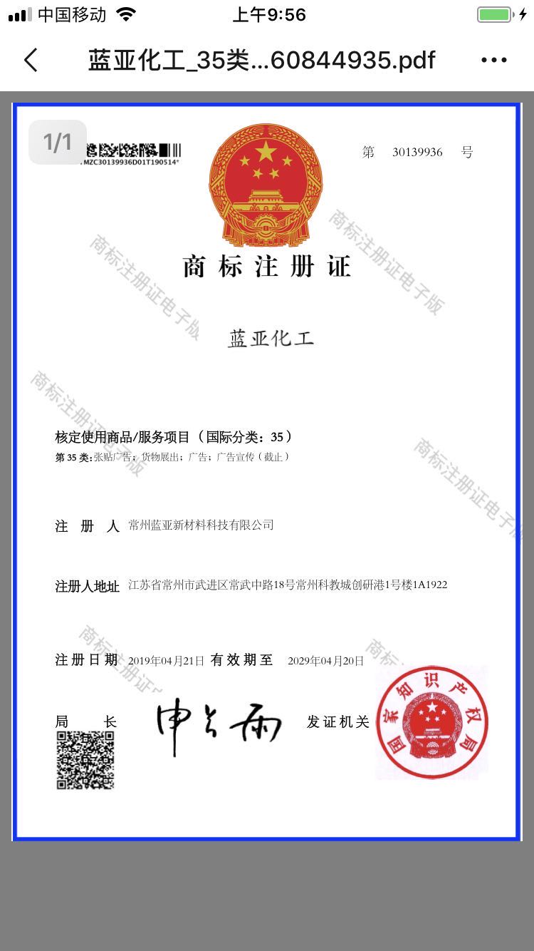 常州藍亞新材料科技有限公司是一家集技術研發(fā)、技術服務、生產(chǎn)加工、經(jīng)銷批發(fā)為一體的化工經(jīng)營企業(yè),擁有完整、科學的質(zhì)量管理體系,以雄厚的實力、低廉的價格,優(yōu)良的服務與多家企業(yè)建立了長期的合作關系。我們有很廣泛的商品信息網(wǎng)絡,合作伙伴遍及世界各地,我們在“質(zhì)量為先”的經(jīng)營理念指導下,經(jīng)過全體員工的不懈努力,以經(jīng)取得了令人矚目的成績,并擁有一支業(yè)務精通、操作能力強的骨干隊伍。公司實力雄厚,重信用、守合同、保證產(chǎn)品質(zhì)量,產(chǎn)品品種齊全、價格合理,以多品種經(jīng)營特色和薄利多銷的原則,贏得了廣大客戶的信任。